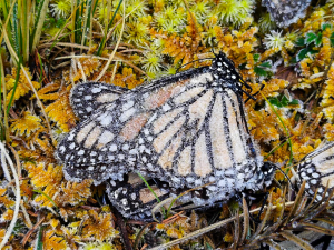 Overwintering monarchs covered in ice crystals in the Monarch Biosphere Reserve. Date and photographer unknown