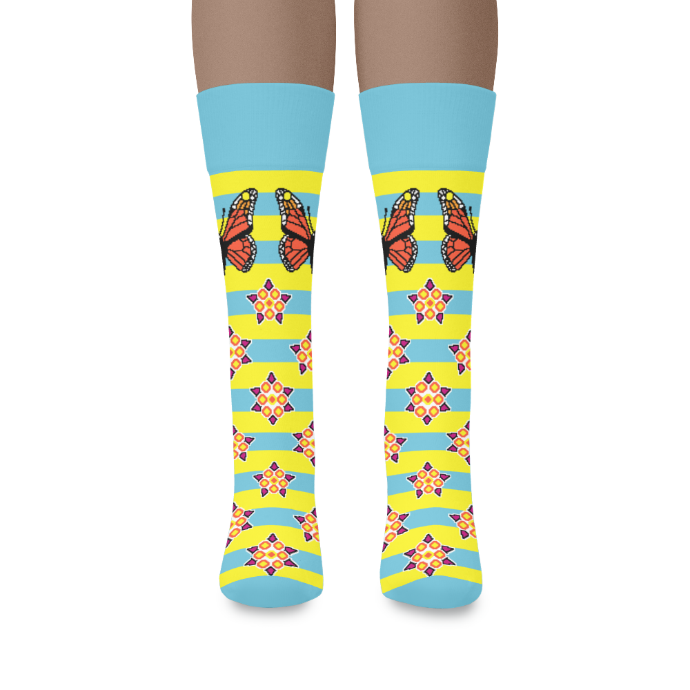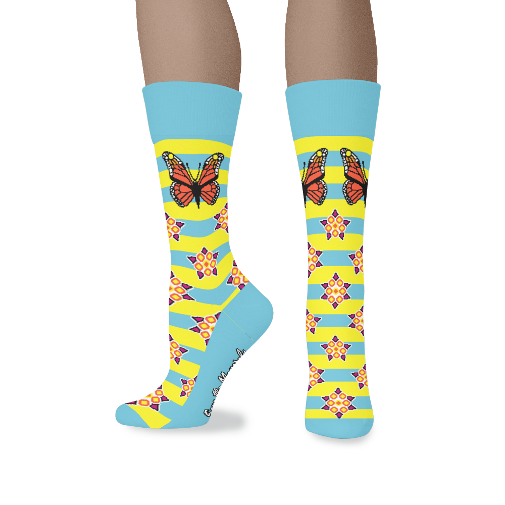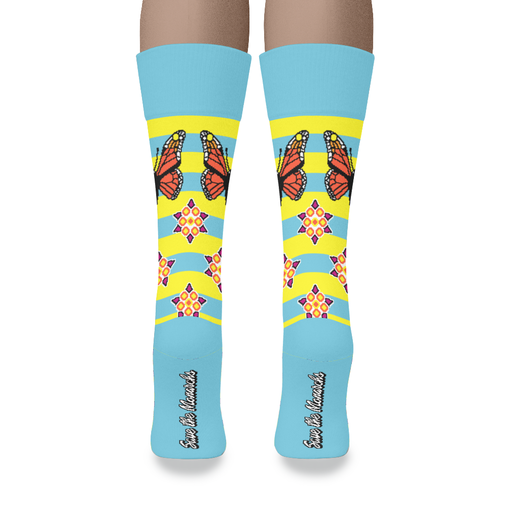 Step up your sock game and support monarchs at the same time! These one-of-a-kind, customized “Save the Monarchs” socks are a fun, vibrant way to show your love for pollinators.